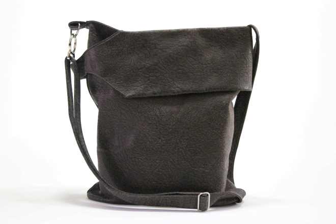 Uitvoering: tas met een naad aan de achterzijde, niet gevoerd en met drie ritsvakken waarvan een met kaartvakjes. Verstelbaar cross over hengsel. De tas is makkelijk op te pakken door het handvat aan de zijkant. De brede kraag geeft te tas een stoer uiterlijk. De tas sluit met twee (aan de buitenzijde niet zichtbare) drukknoppen.